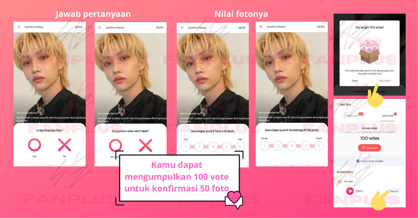 4.) Mengkoordinasi 50 fotoDapatkan votes dengan mengkombinasi 50 foto ( votes didapatkan sehari satu kali) dan menolong stay yang lain mendapatkan votes lebih dengan mengunggah gambar untuk di konfirmasi yang lainya juga!