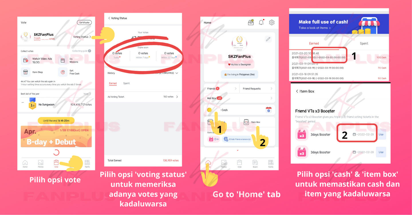 booster yang aktif hanya selama polling berlangsung ( votes bisa kadaluwarsa setelah 90 hari) & sebisa mungkin saat mendekati waktu 00.00 KST atau sebelumnya mengumpulkan vites dari teman untuk memaksimalkan penggunaannya.